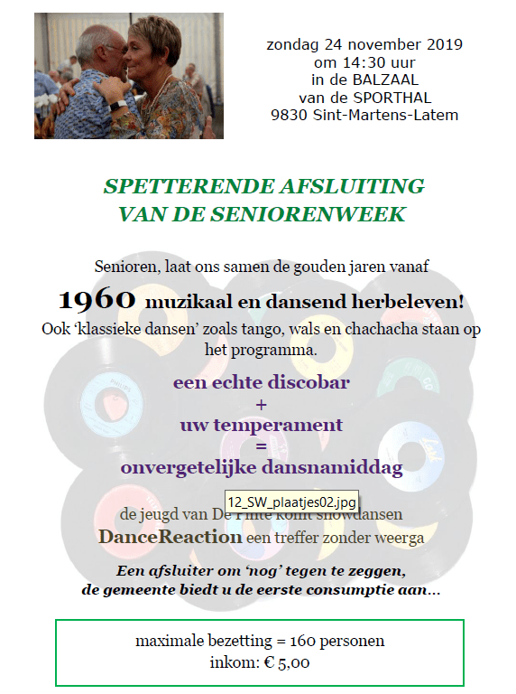 - 13u00 DanceMix (dus om 12u40 aanwezig zijn)