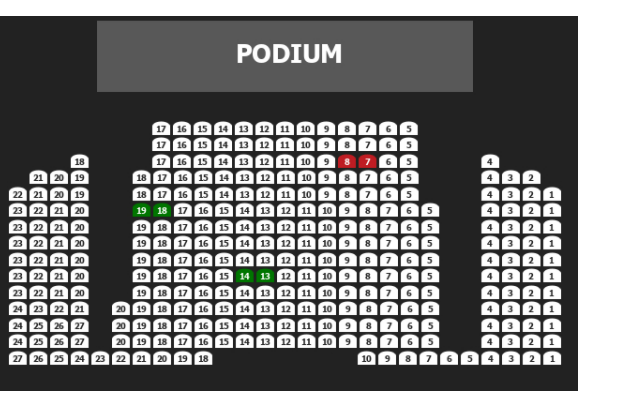 - Groen = bezette stoelen (hier 13-14 en 18-19)
